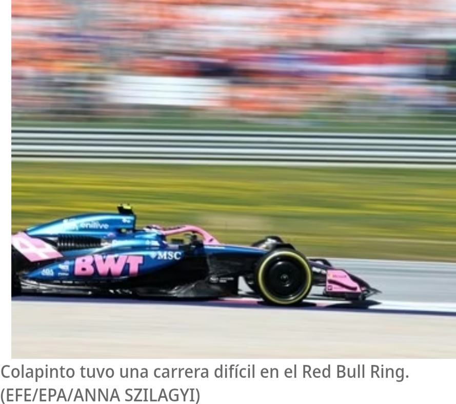 Se sabía que Franco Colapinto no la tendría fácil en el GP de Austria, cuyas características no favorecen para nada…