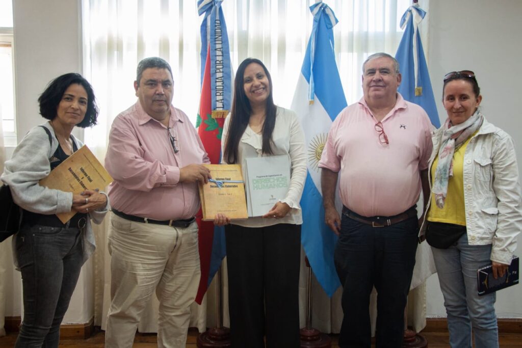 El encuentro estuvo encabezado por el secretario de Derechos Humanos, Delfor Brizuela, el director de Promoción, Marcelo Acosta, y parte del equipo técnico de la Secretaría. Por parte de la UNLaR, participó la rectora Natalia Álbarez Gómez, quien recibió de manos de las autoridades copias del “Informe final y Documentos Elaborados” de la Comisión Provincial de Derechos Humanos de 1984, a 40 años de su elaboración.