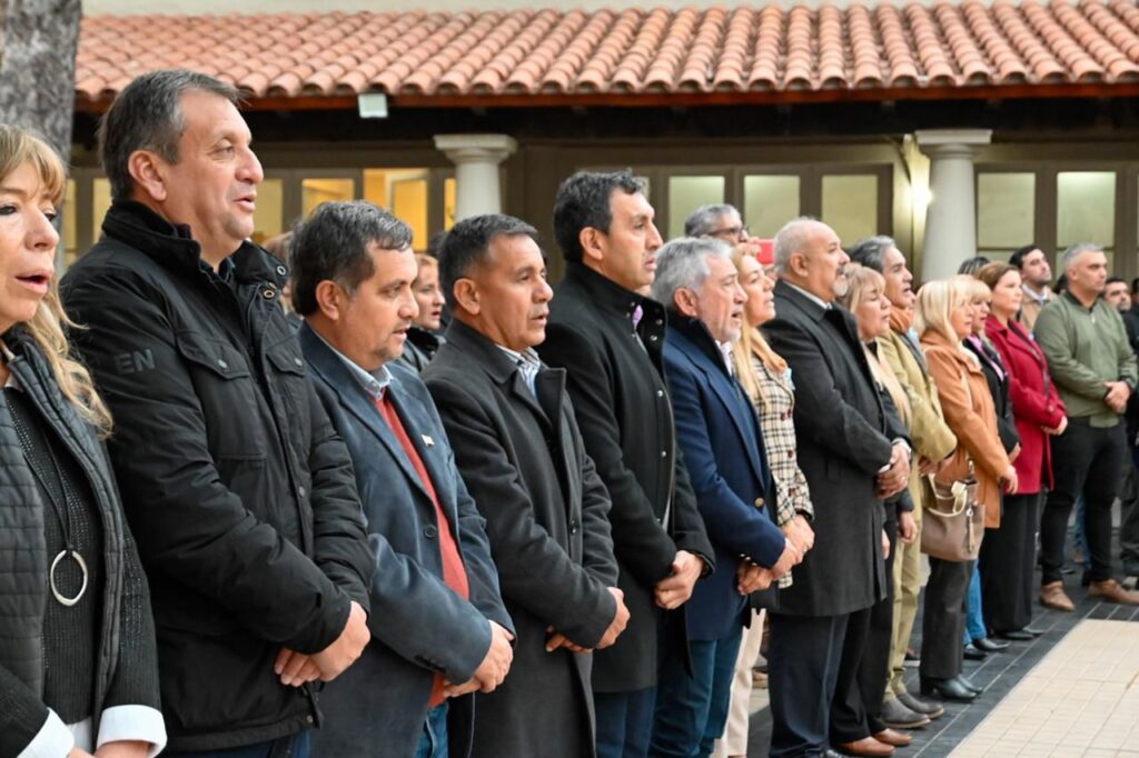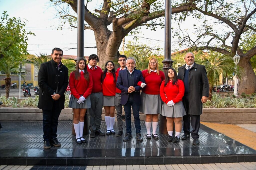 Previo al acto, se llevó a cabo el izamiento de banderas en la explanada del municipio, con la participación de directivos y estudiantes del Colegio Provincial N°13 “Ramón Navarro”, quienes formarán parte de la capacitación “Mi primer empleo”.