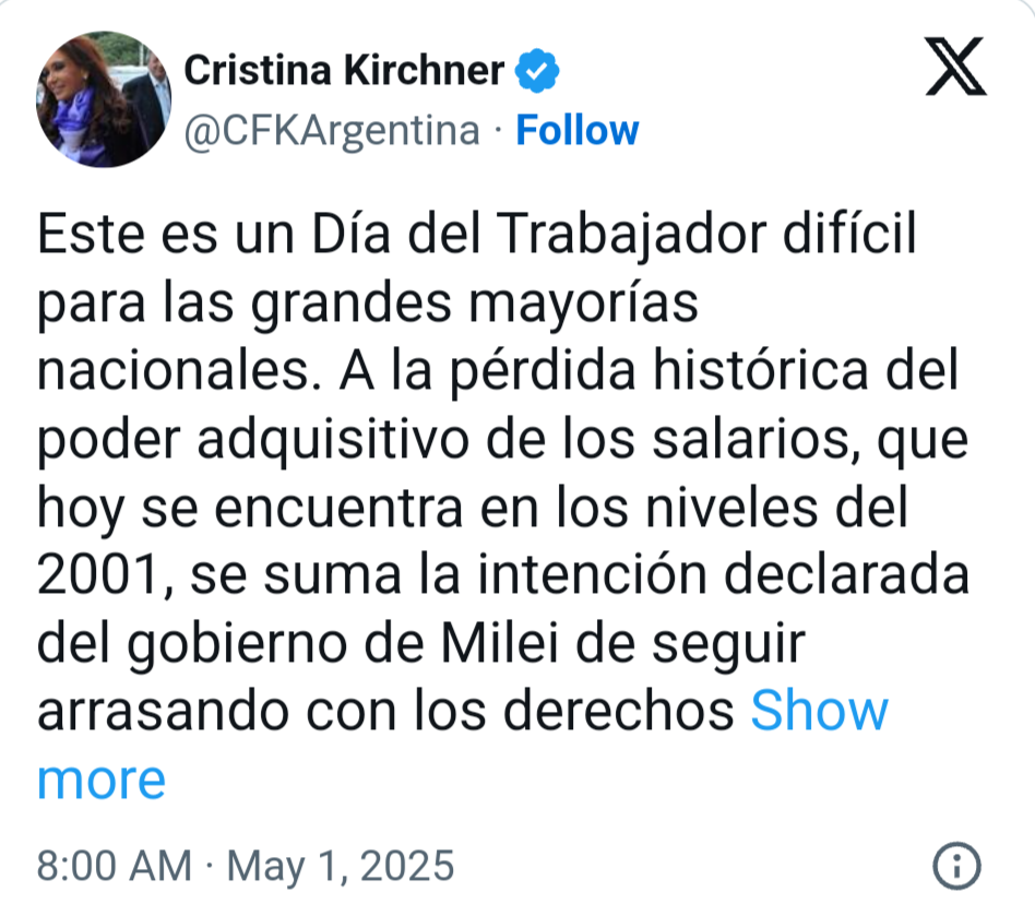 La presidenta del PJ hizo un posteo en el que apuntó contra la política del Gobierno para el sector asalariado.