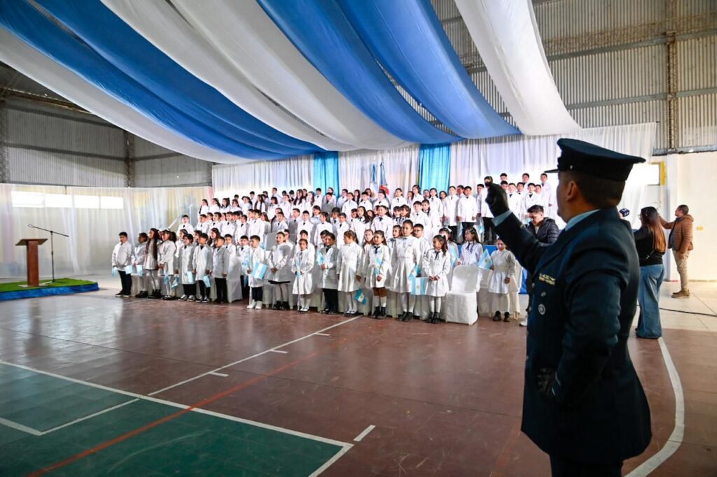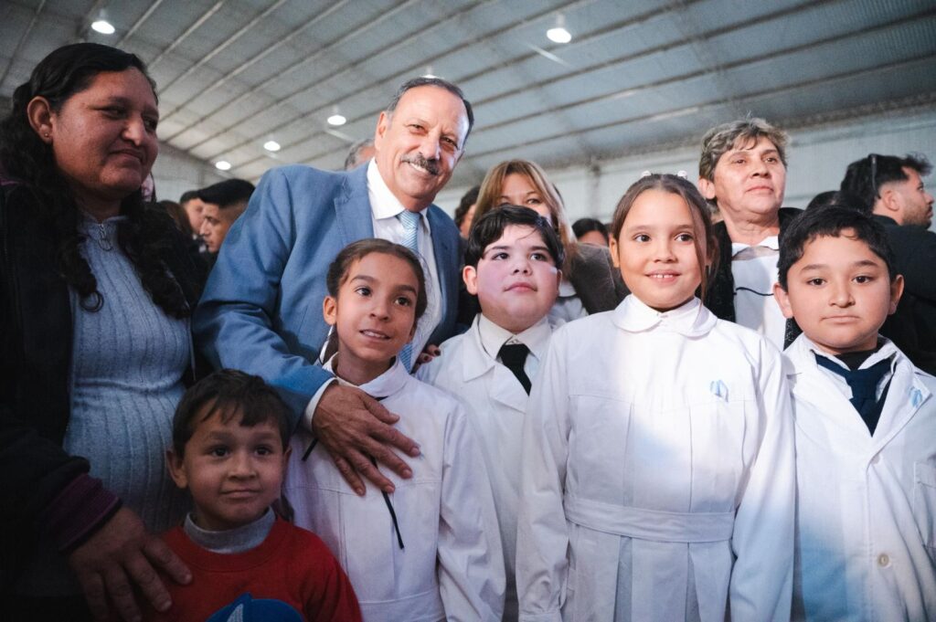 Durante su intervención, el Gobernador saludó a las niñas y niños, al cuerpo docente, a los equipos directivos y a las supervisoras y supervisores, a quienes definió como “pilares fundamentales de la Patria, de nuestra provincia y del departamento”. También expresó su gratitud hacia el pueblo local: “Siempre te reciben respetuosamente, con mucho cariño, con mucho amor, y te abrazan”, señaló.