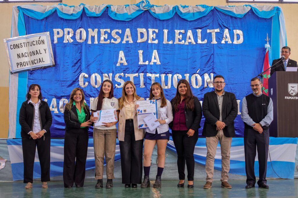 En un emotivo acto desarrollado en el Colegio Agropecuario de Famatina, la vicegobernadora Teresita Madera acompañó a la intendenta Adriana Olima en la toma de la Promesa de Lealtad a la Constitución Nacional y Provincial por parte de estudiantes de tercer año de distintas instituciones educativas del departamento.