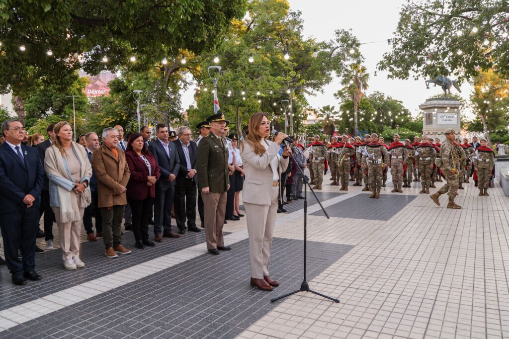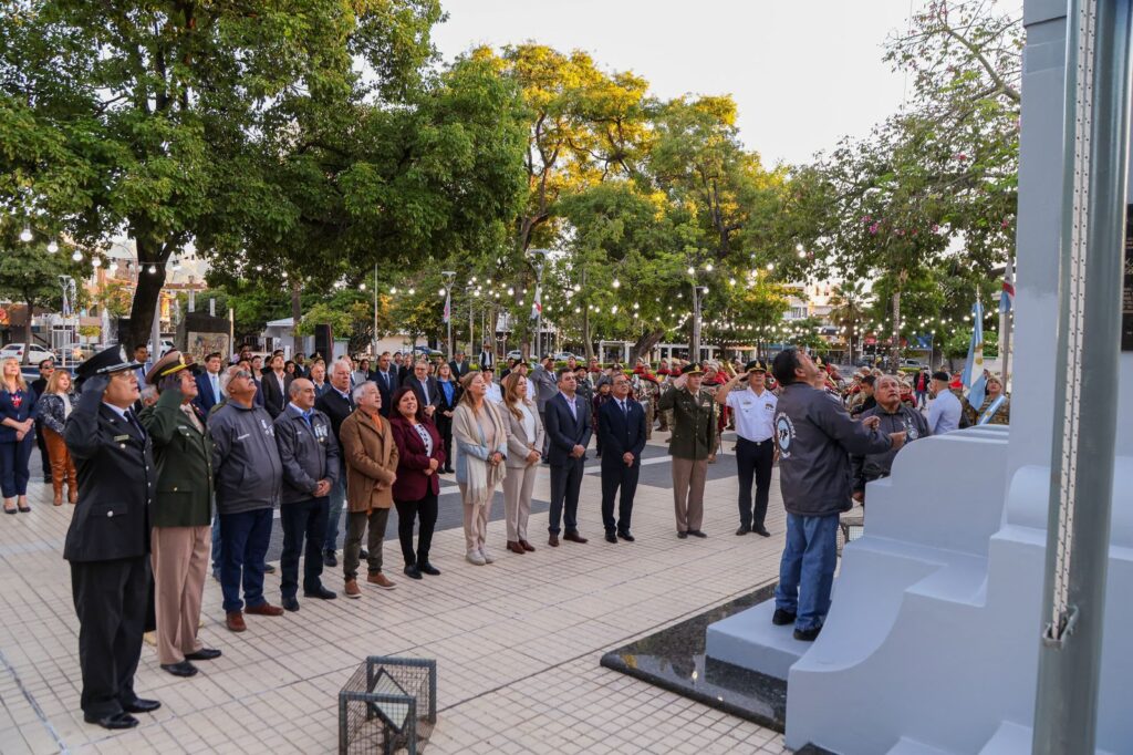En las primeras horas del miércoles 2 de abril, la vicegobernadora Teresita Madera presidió el Izamiento del Pabellón Nacional en la Plaza Principal, acompañando a los veteranos de guerra, protagonistas de la gesta heroica de Malvinas.