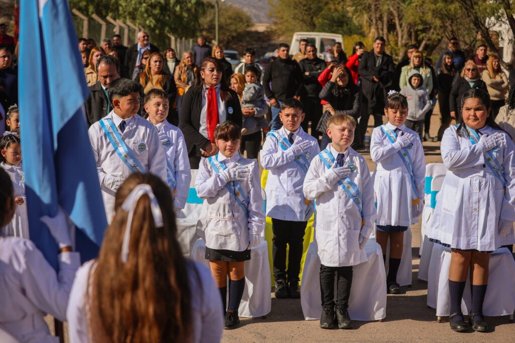 En la localidad de Portezuelo, la Promesa de Lealtad a la Bandera Argentina a alumnos y alumnas de 4to grado de la Escuela N°91 “Gobernador de Chubut”, fue tomada por la vicegobernadora Teresita Madera; en tanto que el ministro de Educación, Ariel Martínez, tomó juramento de Fidelidad a la Bandera Nacional a cadetes del Instituto Superior de Formación Integral en Seguridad Pública, Departamento de Formación de Agentes de Policía Sede Chepes.