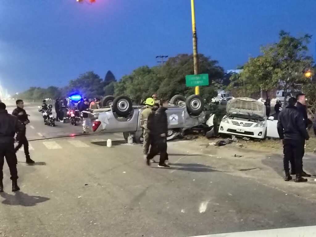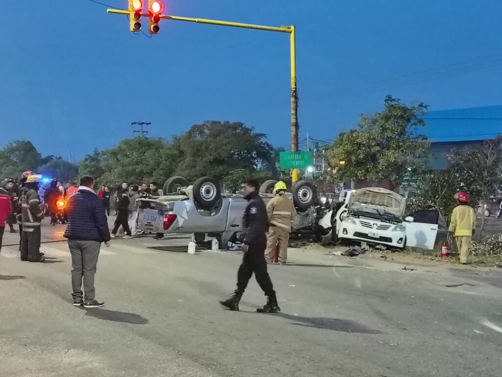 La camioneta pertenece al CAPE y se dirigía a un operativo en el barrio El Sembrador. En el trayecto, por Félix de la Colina y Viamonte se produjo un siniestro vial con un automóvil y volcó.