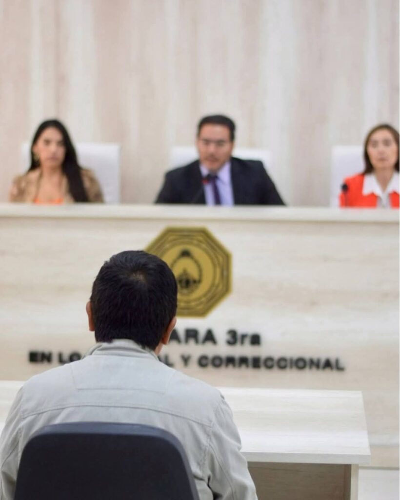 Esta primera audiencia de debate, se desarrolló en la Sala de la Cámara Tercera en lo Criminal y Correccional de la Primera Circunscripción Judicial; en este marco, el tribunal está conformado por el juez Gustavo Díaz, como presidente; junto a las juezas vocales Sara Lopez Douglas y Karina Cabral.